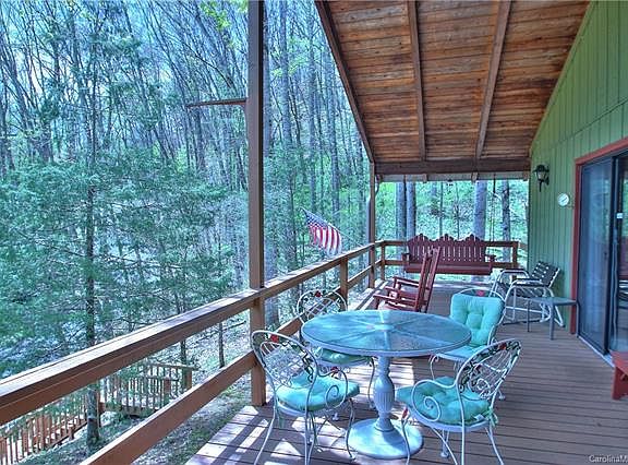 What a great find at Maggie Valley Country Club estates! Sited perfectly on a corner, knoll lot with paved, year-round access you will encounter this beautifully well-maintained jewel. Built in 1977, this is a home that defines good bones. Recently painted, the welcoming exterior boasts a massive covered porch and patio to enjoy the peaceful setting. The interior floor plan features an open flow from the kitchen into the dining and living areas. The spacious master bedroom is a sanctuary with double and separated vanities and a large walk-in closet. The main level also features a half bath for guests. The lower level offers two bedrooms and a well-planned bath configuration and family room/den. There is a washer/dryer hookup on both levels for your choice of laundry. An oversized two car garage contains room for a work bench and storage. The lot is a natural, wooded beauty requiring low maintenance. The home is ripe for your creative choices to make it a stunner. Furnishings available.