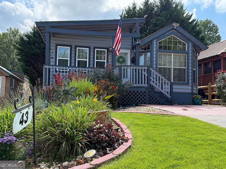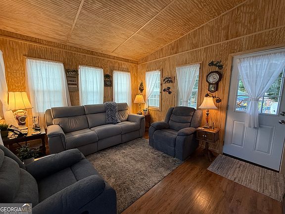 METICULOUSLY MAINTAINED PARK MODEL IN THE ELKMONT RESORT LOCATED IN CLEVELAND, GA. From the moment you pull on to the property you can see the care and detail that been given to the home and landscaping!! When you walk through the front doors a spacious family room invites you in!! The kitchen and dining room flows together with big windows that let in beautiful natural light. Down the hall is a full bath and an area for a washer/dryer combo. This leads to the bedroom with room to walk on both sides!! The hallway also has a stairwell leading up to a two-sided loft - great for extra sleeping space or storage, underneath the stairwell provides some additional storage space too. Stepping out on to the deck is a great place to enjoy morning coffee or afternoon conversations!! The outbuilding has electricity and a A/C unit installed to make a great hobby room or workshop, and of course you can never have enough space for storage!!! The yard has been beautifully landscaped with grass, paver paths and rocks. A brand new A/C unit was installed in 2024. Not much to do, but pack your bags and grab your news keys!! The Elkmont community offers amenities such as a pool, exercise room, community building and common space, year round fire pit and so much more!! Don't delay, schedule your showing today!!! This is a gated community so no drive-by's are allowed, you must be accompanied with an agent!!