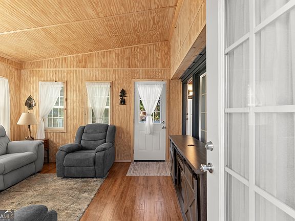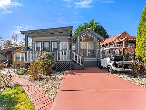Charming Park Model in Elkmont Resort - Gated Community Near Helen! Welcome to Elkmont Resort, a beautiful gated community in Cleveland, just minutes to local wineries, and shopping. This well-maintained 1 1/2-story Park Model home offers comfort, charm, and convenience in a peaceful resort setting. Inside, you'll find a bright and spacious family room with large windows that fill the home with natural light. The layout includes 1 bedroom, 1 bath, and a two-sided loft perfect for guests, storage, or a cozy reading nook. Enjoy recent updates such as new faucets and a new HVAC system, ensuring comfort and efficiency year-round. Outside, you'll love the beautifully landscaped yard with thoughtful pathways and rock features that create a serene outdoor retreat. The outbuilding is a fantastic bonus - complete with electricity and its own AC unit, ideal for a workshop, hobby space, or extra storage. Elkmont Resort residents enjoy great amenities, including a swimming pool, exercise room, laundry facilities, community pavilion, fire pit, and more. This is a gated community, and buyers must be accompanied by an agent. If you're looking for a peaceful getaway or full-time retreat close to Helen and all that North Georgia has to offer, this Elkmont gem is a must-see! Some furniture will convey with the sale. Golf cart is negotiable. GATED COMMUNITY.