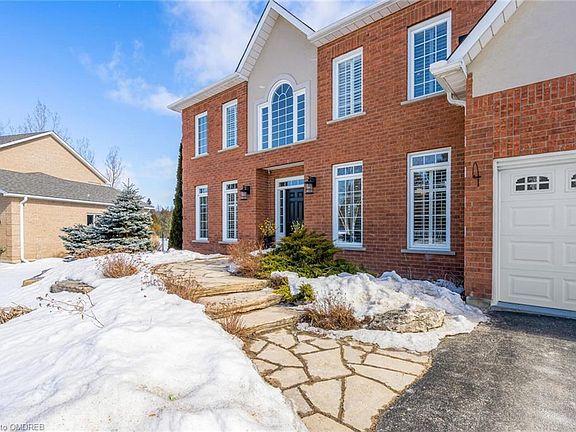 Small town charm luxurious living ! This is what you have been wishing for. 3D Tour available walk through this luxury home in The Village of Erin. From the minute you walk in, the first impression in the grand entrance to great room is the center for this home with 19 ft. ceiling and large open concept great room. Custom kitchen with granite countertop breakfast bar with soft closing drawers, stainless steel appliances and a double door pantry. The Great room is a showstopper with natural gas fireplace, hardwood floors large rectangular window creates a true focal point and visual centerpiece in this home. The formal dining room with chandelier off the foyer entrance. Main floor office for those who now can work from home. Upstairs you will be happy to find your getaway, large master bedroom with a sitting room all its own with natural gas fireplace. Brand new customer bathroom with freestanding tub and rain shower you will have your private spa. The mini master with en-suite and walk-in closet is perfect for guest. Once your cross the catwalk on the dark hardwoods there are 2 more large bedrooms with small walk in closets, with a shared jack and Jill bathroom. The basement is ready for your games room, man cave or media projection theatre, engineered hardwood, custom stone fireplace with fireplace insert the large above grade windows make the difference in the light and open feel of this room. The rec room area is perfect for a pool table or foosball table and when company is over there is a newly completed bathroom available to them. This property is beautiful in all seasons with large new deck and banisters, Brand New hot tub, Inground pool with patio area. in 2020 the pool was upgraded with new liner and pump and heater. Enjoy a drink at the tiki-bar or finish the night relaxing by a bonfire.