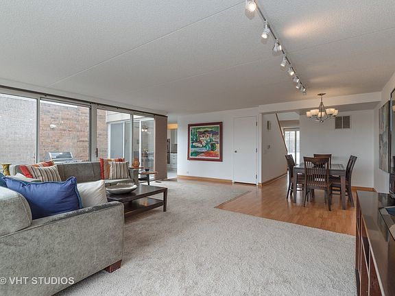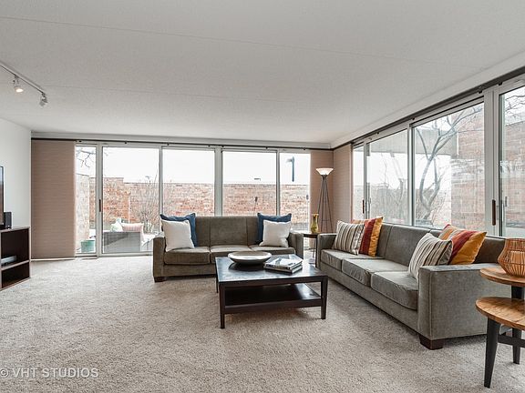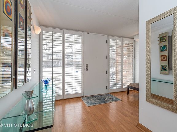 Airy, light-filled end unit town home with floor to ceiling windows, attached two-car garage, full finished basement, and two outdoor patio spaces! Modern kitchen with all Stainless Steel appliances, granite counters, and eat-in area. Combined living / dining area on first floor boasts more than 500 SF. Upstairs, three bedrooms surround the central family room / den. Massive master suite with walk-in closet and dressing area, spa bathroom. First floor laundry. New carpeting and custom window treatments on the 1st floor, including plantation shutters in foyer. Full finished basement has more than enough room for an additional media room / rec room, and office. Steps from the seasonal outdoor pool! Walk to shopping and dining at Northbrook Court. Easy access to expressways, Metra, and O'Hare airport. Top-rated Northbrook schools make this a real gem.