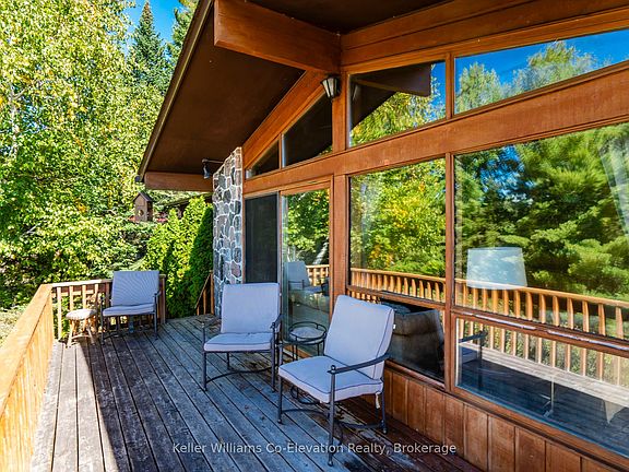 This beautiful 3-bedroom home is perfectly nestled in the highly desirable community of Wendake Beach - just steps from the sandy shores of Georgian Bay. Set atop an expansive 84 x 450-foot lot, this spacious property offers a stunning vantage point to take in breathtaking sunsets over the bay. Inside, the main floor boasts vaulted ceilings and a bright, open concept living space featuring a cozy stone fireplace and walk-out access to a wraparound deck - ideal for entertaining or relaxing with a morning coffee. The eat-in kitchen is both functional and inviting, while the delightful 3-season sun porch provides the perfect spot to unwind and listen to the soothing sounds of the waves. With three well-appointed bedrooms and two full bathrooms on the main level, this home offers plenty of room for family or guests. The lower level adds even more space, with a large rec room and ample storage space. Recent upgrades include a new roof (2019) and a new septic tank, ensuring peace of mind and long-term value. Just across the road, a sandy path leads you directly to the beach, making this the perfect getaway for those dreaming of a cottage lifestyle or year-round beachside living and conveniently located only a short drive to Midland, Wasaga Beach, and Barrie. Don't miss this rare opportunity to own a piece of paradise near Georgian Bay.