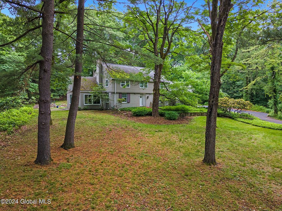 Charming home nestled in highly desirable Brunswick Hills (voluntary HOA). This New England Colonial features inviting, spacious, light-filled rooms with views of a private and enchanting landscaping. Walk right into a grand foyer with solid wood paneled walls, formal dining, beautiful, open, eat in kitchen with granite countertops, high-end cabinetry and updated appliances. Also on the first floor is an expansive living room with fireplace, and a sun drenched three-season room, family room, full bath, laundry and gleaming hardwood floors. Upstairs has four large bedrooms, including a primary suite with his and her closets and another full bath. Once outside you'll see three garage bays for all your toys, 1.82 acres of masterful landscaping, patio and koi pond. Book your showing today!