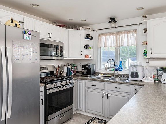 This inviting 3-bedroom, 2.5-bath Cape built in 2006 offers 1,596 square feet of comfortable living space on a .21-acre lot. Thoughtfully designed with modern conveniences and flexible living areas, this home is move-in ready. The main level features an open layout beginning with a bright kitchen equipped with stainless steel appliances, excellent counter space, and bar seating for casual dining. A designated dining area with sliding doors leads directly to a spacious back deck, creating a seamless indoor-outdoor flow for entertaining or relaxing. The living room provides a welcoming central gathering space, while a convenient half bath with laundry adds function to the first floor. The highlight of the main level is the private primary suite, complete with an ensuite bathroom for comfort and ease. Upstairs you’ll find two additional bedrooms and a shared full bathroom, offering flexibility for guests, family, or a home office. Outside, enjoy a large deck overlooking the level backyard which is the perfect setting for morning coffee, summer barbecues, or simply enjoying the peaceful surroundings. Set in a neighborhood yet close to local amenities, commuting routes, and schools, this home combines small-town charm with everyday convenience. With its thoughtful floor plan, modern updates, and welcoming outdoor spaces, this is ready to be your next home.