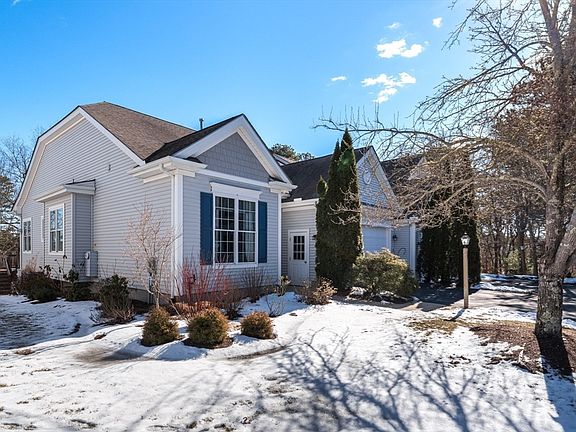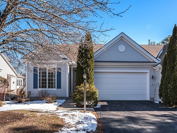 This Franklin model by Del Webb in Great Island 55 + neighborhood at the Pinehills offers single floor living, with a primary ensuite that has spectacular water views, and an additional bedroom with full bath. The home also has hardwood floors, gas fireplace, and deck with sun shade that make it a very comfortable home for easy living. The finished lower level has all the amenities to make your guests comfortable for an overnight or extended visit, with a full bath and slider as a picture window to fantastic pond views. The home has been very well maintained and was recently upgraded with many new mechanical systems, kitchen appliances, and primary bedroom bath upgrades. The Overlook Clubhouse with indoor pool, bocce courts, tennis, kayaking and endless activities, is just a short distance away.