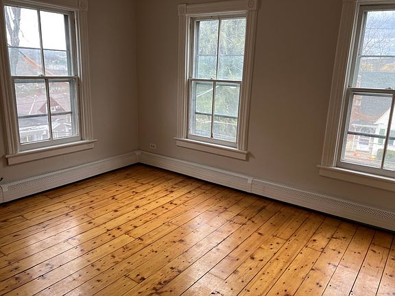 This charming recently renovated 3-bdrm, 2 bath apartment occupies the upper 2 floors of a historic home up the hill from town. Off street parking for 2 vehicles and a small yard backs into the forest. Huge bonus space on the third floor with bedrooms and kitchen on the second. New high efficiency on-demand propane baseboard radiant heat and hot water, paid by tenant, as well as electric. Landlord pays water and trash.