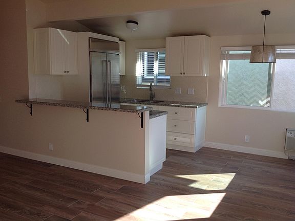 Upgraded flooring and appliances. This two bedroom rear unit is located South of PCH on one of the best streets in Corona Del Mar, Goldenrod Ave. The unit is located between first and second streets. Starbucks. Brueggers Bagels and many other restaurants on PCH are walkable in less than three minutes. The beach and Inspiration Point is a short five minute walk across the Goldenrod Foot Bridge. The unit has private, secure entrances from both Goldenrod Ave and the back alley. Street parking is always available on Goldenrod but one space in a two space garage is also included with the unit. A washer and dryer are located in the garage are only used by this unit. A great breeze flows through the house with large windows that open from every room. On the rare day where it is needed, the unit has room air conditioners in two rooms. The unit was recently remodeled and includes faux-wood, durable floors, stainless steel appliances and granite counter-tops throughout. A large private patio with sunset views is located directly off of the kitchen and main living area. Owner pays city utilities. Tenant pays electric, gas and cable utilities.