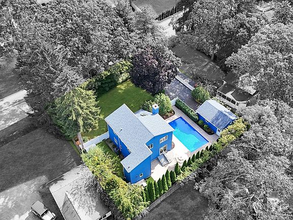 Incredible opportunity to own a magnificent newer-built home boasting a two-year-old roof, setback on the property with mature landscaping that creates privacy and seclusion from the moment you arrive. A long blacktop driveway with a Belgian block border leads to a two-car detached garage with electric, one large garage door, and white PVC fencing framing the grounds. The front approach is highlighted by a custom paver porch and beautiful cultured stone skirt wrapping the home, setting the tone for what’s inside and out. The backyard is a true resort, featuring an enormous paver patio, heated saltwater inground pool, multiple entertaining spaces, a portion of the yard finished with Astroturf for low-maintenance beauty while the front yard remains lush grass, and several entrances into the home for seamless indoor-outdoor living. The pool is perfectly positioned between the house and garage, creating a tranquil, private oasis. Inside, a brand-new white front door with glass top opens into a dramatic two-story grand entry with soaring vaulted ceilings, recessed lighting, and oversized windows that fill the space with natural light. The formal living room is centered around a one-year-old Lopi Endeavor wood-burning stove set against a cultured stone wall, while the formal dining room is highlighted by a modern nine-bulb chandelier and a huge slider leading directly to the rear yard. The chef’s kitchen is outfitted with white cabinetry, granite countertops, stainless steel Bosch stove and dishwasher, stainless steel refrigerator with water and ice, subway tile backsplash, and a breakfast bar, all flowing seamlessly into a brand-new mudroom complete with LG front-loading washer and dryer, white cabinetry, hanging storage, and yet another access point to the backyard. The first floor offers one bedroom, making it ideal for a home office, out-of-town guests, or extended family, along with a full bath featuring floor-to-ceiling tile, a glass stand-up shower, and modern fixtures. Upstairs you’ll find a versatile den/bonus room or additional bedroom with updated hardwood floors and ceiling fan, plus an incredible primary suite with ceiling fan and a brand-new spa-like bath with glass tub and shower with built-in soap niches, custom tile flooring, and white vanity. A spacious additional bedroom with new flooring and a six-panel fog glass closet door rounds out the second floor. This home is packed with upgrades including 200-amp electrical service, Andersen windows, a less than one-year-old high-efficiency boiler, propane cooking, a separate cesspool and dry well, and a five-zone inground sprinkler system. Truly one-of-a-kind, this property combines modern finishes, meticulous updates, resort-style outdoor living, and every high-end feature today’s buyer could want.