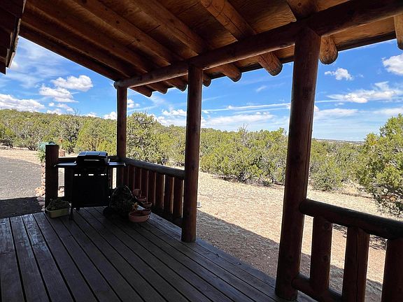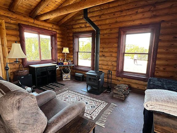 High Desert Paradise Tiny Getaway Cabin!! This super-cute off-grid property offers flexible accommodation options, whether for a weekend retreat or an extended summer stay. The lot includes a tiny cabin of approximately 416 square feet, which is plumbed for a bathroom and provides views of Red Hill. Recent improvements include a new metal roof, complete oil treatment and staining of the logs inside and out, along with adding additional support and insulation in the crawlspace. Heat is provided by a wood burning stove. Some furnishings may convey with the property. Take advantage of the covered deck and enjoy the amazing views and the peace and solitude of the high desert. Situated 16 miles from the Arizona border and just 30 minutes from Springerville, AZ, residents will have convenient access to shopping and medical facilities. For fishing enthusiasts, Quemado Lake is less than an hour away, with additional lakes nearby in Arizona. Recreational opportunities abound, including skiing at Sunrise in the White Mountains, hiking across thousands of acres of National Forest, and day trips to Petrified Forest National Monument. The location provides a tranquil environment away from urban areas, featuring remarkable sunrises and exceptionally clear night skies. The property benefits from a Landowners' Association for road maintenance, access to a community well, and services provided by a volunteer fire department.