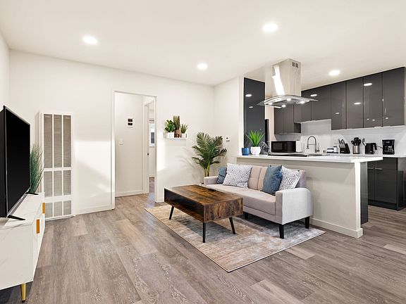 COMPLETELY REMODELED! This newly remodeled apartment features a modern design, open floor plan (kitchen, dining area, living room), premium appliances, recessed LED lighting, dual pane windows, engineered wood floors, and highly desirable finishes throughout. The bedroom is spacious with ample closet space. A two car garage comes with the unit.. Laundromat is literally right next door. Pet friendly!!