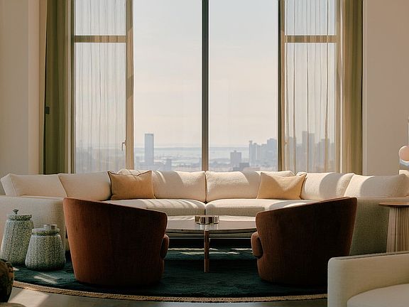 Penthouse 70 is a four-bedroom, four-and-a-half-bathroom residence featuring 4,765 square feet of interior space accented by southern, eastern, northern, and western exposure. Direct elevator entry leads into this expansive home, which offers unmatched views of The Empire State Building, Chrysler Building, Central Park, George Washington Bridge, and beyond. The dramatic entry gallery leads to a gracious great room that boasts southeastern exposure and floor-to-ceiling windows. A north-facing kitchen with adjacent dining room offers a Statuarietto marble island and Italian custom-crafted matte lacquer white cabinetry adorned with Sub-Zero and Wolf appliances. A formal dining room is adjacent to the kitchen and offers northeastern exposure.