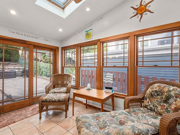 Gleaming hardwood floorsStunning three-sided gas fireplaceConvenient office nookOcean viewsBright skylightsVaulted ceilingsFenced-in yard