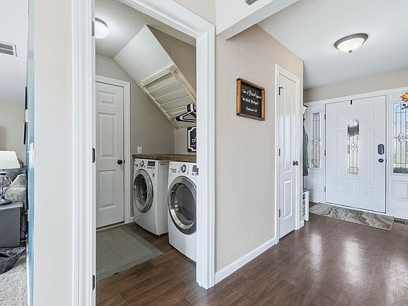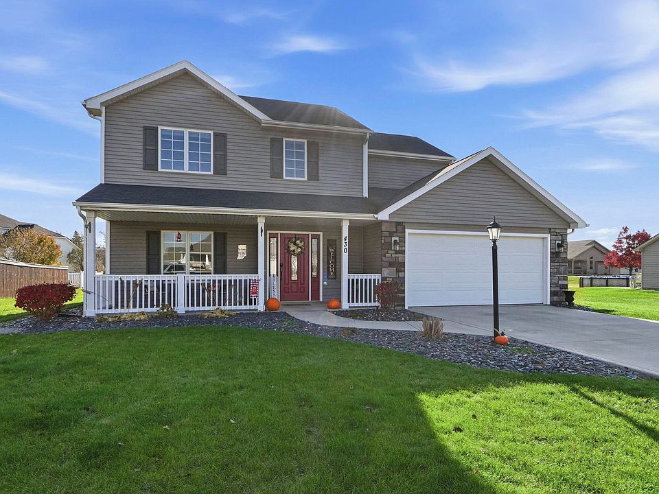Cozy covered front porchPrimary suiteDouble vanityFour spacious bedroomsTray ceilingsUpdated lightingInterior paint