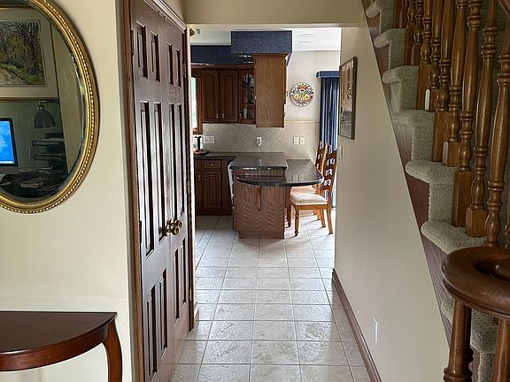 Pride of ownership shines throughout this beautifully maintained 3 + 1bedroom, 2.5-bath brick home in the heart of charming Ridgeway. With striking curb appeal, this traditional two-story residence is framed by professional landscaping, an interlock brick driveway and walkway, and a welcoming covered front porch. The attached double garage provides ample parking and storage. Inside, enjoy spacious and light-filled principal rooms, including a bright and cheerful living room highlighted by a stunning Muskoka stone fireplace. Elegant glass French doors lead into a formal dining room perfect for entertaining. The well-appointed kitchen offers an abundance of cabinetry, granite countertops, a convenient breakfast bar, and a dinette area with patio doors opening onto a large, low-maintenance composite deck ideal for outdoor gatherings. The lower level features a generous open-concept recreation room with a wood-burning fireplace, extra-high ceilings, a rough-in for a wet bar, and a stylish 4-piece bath. A beautifully finished laundry room and a second kitchen ideal for multi-generational living or future in-law suite potential. Significant recent updates include an level 2 charging system for electric vehicles, central air, furnace, central vacuum, roof, remodeled bathroom, eavestroughs, and repointed brickwork, ensuring peace of mind for years to come. Located just a short stroll from the boutiques, cafes, and community charm of downtown Ridgeway, and only minutes to the QEW and the Peace Bridge to Buffalo, this home offers both comfort and convenience.