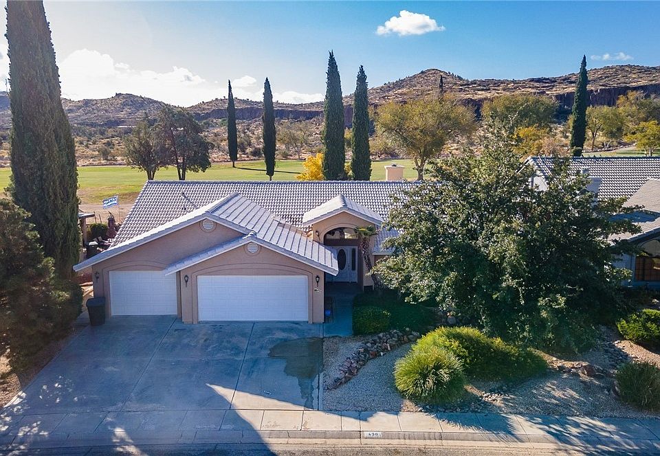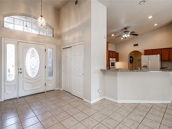 Lovely 3 bedroom 2 bath, golf course home with features including : *Kitchen Island *Breakfast Bar *4 Burner Gas Range Top *Double Oven *Trash Compactor *Casual Dining *Formal Dining Space *Gas Log Fireplace *Blinds and drapes throughout *Master Bedroom Patio Access *Dual Vanities *Garde Tub *Separate Shower *Walk In Closet *Indoor Laundry with Sink and Folding Table *3 Car Garage *Attic Access in Garage *Soft Water *Reverse Osmosis *Landscaped Front and Back Yard *Covered Back Patio *Backs to 2nd Hole on Cerbat Cliffs Golf Course *Two AC Units *Two Heating Units *Centrally located for easy access to shopping and dining