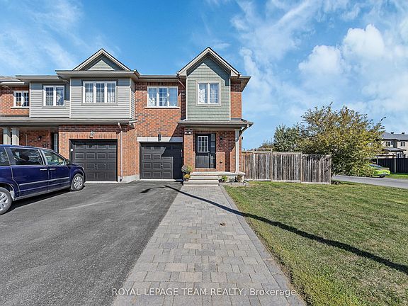 Nestled on a quiet cul-de-sac, this bright 3-bedroom, 2.5-bath end-unit townhome sits on a spacious corner lot and is perfect for first-time home buyers, families, or investors alike. Step inside to a generous foyer leading to an open-concept main level featuring a modern kitchen with stainless steel appliances, dining area, and inviting living room and main floor powder room. The patio doors open to a large, fully fenced backyard with a deck, patio and new garden shed. Plenty of space for children to play and perfect for outdoor entertaining. Upstairs, you will find new hardwood floors, a spacious primary suite with a walk-in closet and 3-piece ensuite, plus two additional bedrooms and a full family bath. The finished lower level provides extra living space with a cozy family room and gas fireplace, laundry area, and ample storage. Complete with an attached garage with inside entry and two additional parking spaces, this home offers comfort and convenience in equal measure. Located close to top-rated schools, parks, transit, shopping, and restaurants, this is Riverside South living at its best.