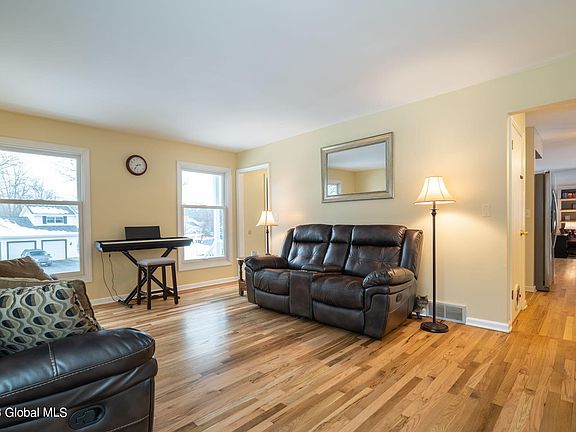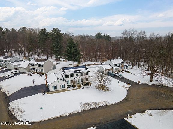 Welcome to this spacious 4BR, 2.5BA home w/newly refinished HW floors just 2 weeks ago. SS appliances, stove is 3 yrs old & refrigerator is BRAND NEW. Oak cabinets, tile backsplash, cozy fireplace in the FR, built-in bookshelves & built-in TV stand, ceiling fans in all rooms, large walk-in closet & master BA. More than half of the windows have been replaced with Anderson windows a year ago. Central air, cedar closet in the basement, built-in shelves in the garage. Solar City solar panels installed in 2016, they are fully paid. These panels have reduced the electric bills tremendously. Above ground pool with new pool liner & a wonderful deck attached. Covered back porch & a fenced in yard. All situated on a quiet cul-de-sac in Caroline Manor One of Rotterdam's most desirable neighborhoods.