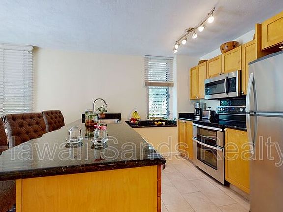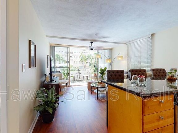 Available for move in on October 1, 2025: Superbly maintained 1 bedroom 1 bath home with large lanai that brings the outdoors in. Sizable air conditioned bedroom and bath with large shower enclosure creates even more spaciousness. Kitchen features updated appliances including a dishwasher! Great location with close proximity to street parking, bus stop, beaches, and the heart of Waikiki. Newly renovated, end unit in a quiet, well-maintained building with community pool, BBQ, bike and surfboard storage.