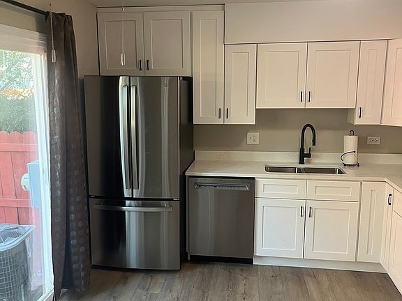 This 3 Bedroom Town home with finished basement is ready for a new chapter. Energy efficient windows installed throughout unit in 2009. Newer sliding glass door leads to private fenced yard and parking. Spacious Front rooms overlook open space park area. New Kitchen includes Brand new cabinets, Quartz stone counters, and wood like flooring throughout Entire 1st level. Two new Bathrooms, New Paint and Carpet throughout. Finished Basement offers another whole living space - Family room and a separate laundry/utility room with Glass block windows w/venting. Unit has 2 assigned parking spaces. Turn the key and move in to your new home. Priced 2 Sell!