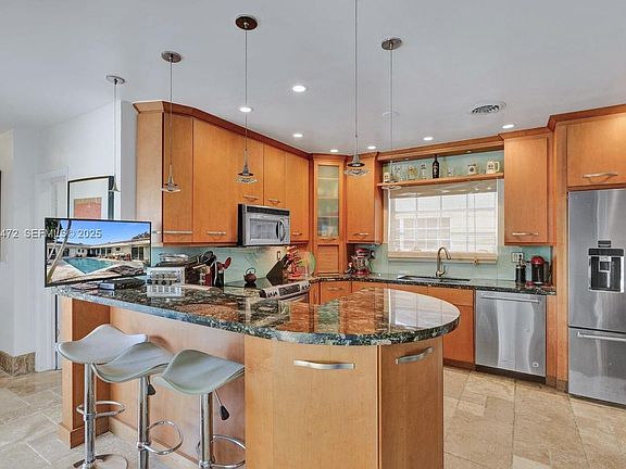 Private poolGranite countertopsSplit floor planElegant travertine flooringWarm wood floorsClassic barrel tile roofStainless steel appliances