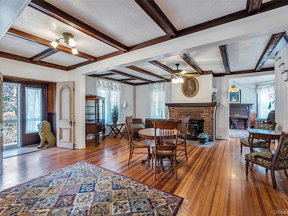 Nestled in the heart of the Historic District, this enchanting 1870 Victorian Farmhouse offers timeless elegance and a rich sense of history. Meticulously maintained and full of character, the home features 5 spacious bedrooms, 3 full bathrooms, and approximately 2,801 square feet of living space set on a beautifully landscaped half-acre lot. The freshly repainted exterior highlights the enduring beauty of the cedar siding, while the 8-year-old cedar roof adds to the home's classic appeal. A gracious wrap-around porch invites quiet mornings and leisurely afternoons. The property also includes a framed but unfinished cottage, a separate shed, and newly planted trees that enhance the storybook setting. Inside, the home showcases original fir hardwood floors, intricate crown molding, antique light fixtures, and ornate radiators. Period details abound, from the rare French Godin stove in the dining area to a traditional fireplace in the living room—adding both charm and warmth. The eat-in kitchen retains its classic appeal while offering generous space for gathering. The private primary suite offers a peaceful retreat, complete with a cozy sitting room that’s perfect for reading, relaxing, or quiet reflection—adding a layer of comfort and charm to the second level. A charming sunroom at the side entry welcomes you in with warmth and natural light, while a separate side room provides the perfect space for a home office, game room, or creative retreat. Two stairways offer easy flow between levels, and a spacious attic provides additional flexibility. Comfort features include Rexall insulation throughout (including between bedrooms for sound and heat retention), a new 275-gallon oil tank, and a new hot water heater. Choice of Westhampton, ESM, or Center Moriches High School. With thoughtful enhancements, preserved craftsmanship, and a location steeped in history, this distinctive home offers a rare opportunity to own a piece of the past.