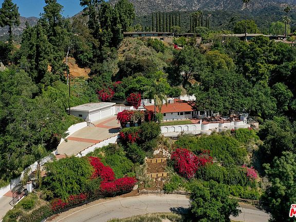 Nestled in the hills of North Monrovia, this single-story home offers an unparalleled sense of tranquility with sweeping panoramic views. Situated behind gates, this two bedroom, three bathroom hillside retreat is perfectly placed among established gardens. Natural light floods the space while open concept living creates flow between entertaining spaces and the outdoors. The expansive grounds are a true retreat, featuring breathtaking views, an outdoor kitchen, lawn, fire pit, terraced garden, and large pool and jacuzzi perfect for both relaxation and entertaining. The kitchen features stainless steel appliances, granite countertops, a center island, breakfast nook, ample cabinetry and dining spaces for all your entertaining needs. The generous sized primary suite features vaulted ceilings with exposed beams, a fireplace, custom walk-in closet and direct outdoor access to the sparkling pool and spa. A second en-suite bedroom offers its own walk-in shower and jetted tub. Comfort is enhanced by central A/C and heat, a Generac house generator, private laundry area, powder bath with walk-in shower, ample storage space, and oversized detached garages with plenty of additional driveway parking. This one-of-a-kind home encompasses all that Monrovia living has to offer. Welcome home!