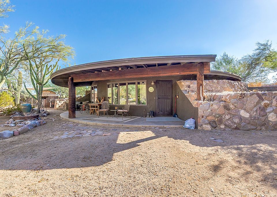 Come experience all that this beautiful, unique home has to offer. Located inside a majestic desert landscape this home uses the earth for energy efficiency and amazing insulation. You will be amazed by the spectacular views of the Superstition Mountains. The main home is 3 bedrooms and 2 bathrooms, with exposed beams and a large updated kitchen, stainless appliances, and an open floorpan. Outside you will find a secluded blue sparkling pool, and a casita perfect for a man cave or she shed. If you are a horse lover you will love the barn with 2 stalls, roping arena, tack room, and the close proximity to equestrian trails. Huge lot with over an acre of land, this home is one of a kind!