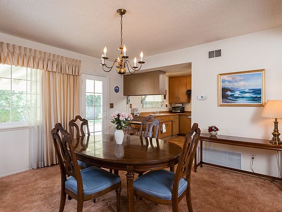 This classic and charming three bedroom home has plenty of space on the inside, as well as a spacious front and back yard that are ideal for gardening and enjoying from beautiful weather. Nestled in a quaint neighborhood, 430 North Palm has a welcoming exterior with a sizeable front yard that includes flower bushes and trees. The floor plan inside is open and roomy – the living room flows easily into the dining room and kitchen. This lovely house is ideal for entertaining guests. There is lush carpeting in the living and dining room, as well as large windows that brighten the space with volumes of natural light. The dining room is very open and also offers access to the capacious back yard. The quaint kitchen has ample cabinet and counter space, as well as a small breakfast bar area for casual dining. The large master bedroom also has lush carpeting and generous closet space. There is also an attached master bathroom for added privacy. The other bedrooms are also roomy and carpeted, and offer sufficient closet space. The back yard is perfect for relaxing and enjoying fresh air. The covered patio is a great place for outdoor cooking and dining. There is more than enough room in the back yard for gardening and landscaping projects.
