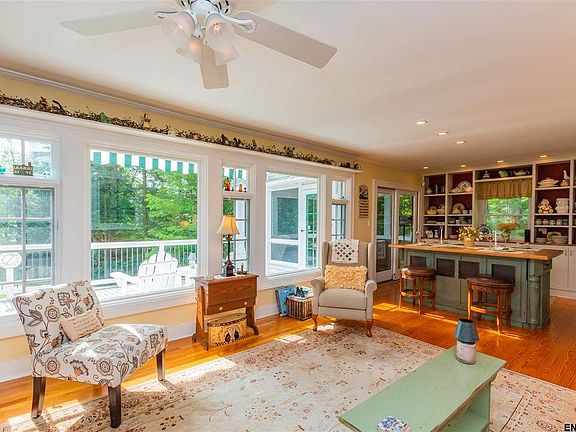 This is an immaculate, charming waterfront property w/100' HRBRRD permit on Great Sacandaga Lake that boasts 3 BR's,highly eff.geothermal htg & cooling sys. gorgeous views of lake & mtns. & is located in a protected cove. K has custom cupboards & granite countertops.Cozy up by the woodstove or gas fireplace or stroll on lg. deck & enjoy the screen room as the house is perfect for entertaining.The gar. has a fin. upstairs for an office.Turn key w/ low Sar. taxes.Dock & generator stay. 2nd lot across street.