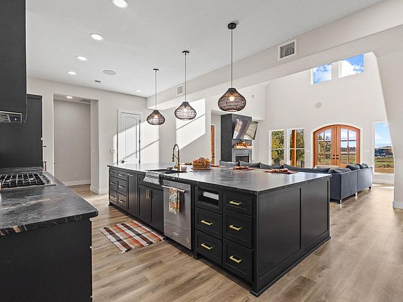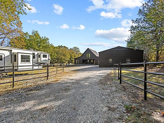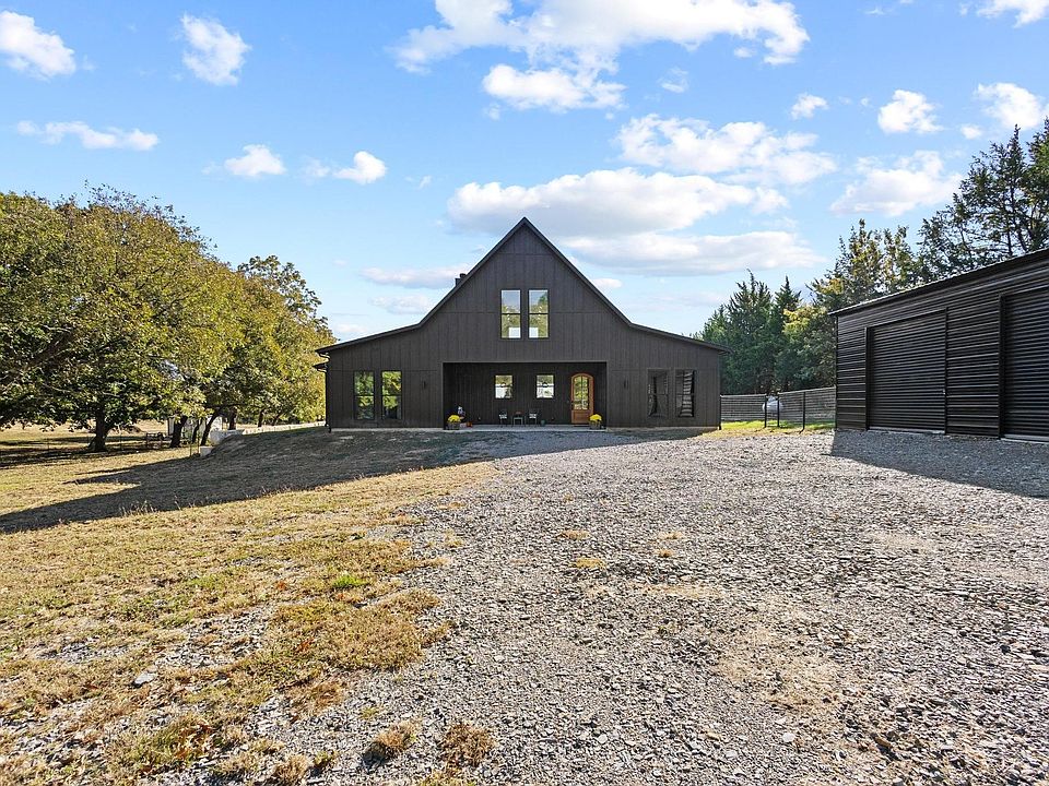 Modern Country Retreat on 2 Acres in Bells, Texas. Built in 2024, this custom-designed home blends comfort, functionality, and country charm on two beautiful acres. At the heart of the home, the kitchen impresses with an oversized island wrapped in leathered granite, custom cabinetry with soft-close drawers, a built-in spice rack, an appliance garage, and KitchenAid appliances. Additional features include a workspace sink, glass cleaner, RO water system, and built-in speakers. The open-concept layout highlights a large living area with soaring ceilings, French doors to the back patio, and built-in surround sound perfect for everyday living and entertaining. The primary suite is privately situated apart from the other two bedrooms and features custom lighting, built-in closets, and a luxurious bath with a soaking tub and walk-in shower. The other two bedrooms share a full bath. Step outside to the side patio, which wraps around the back of the house and extends the full length of the house, ideal for morning coffee or sunset views over the acreage. The outdoor space is equipped with TV hookups, ceiling fans, and built-in speakers for year-round enjoyment. Upstairs, a versatile loft overlooks the living room—ideal for a game room, home office, or creative studio. A side entry from the fenced dog run leads to a well-equipped utility or MUD room with a tankless water heater and easy access to the detached garage-shop. The 1,500 sq. ft. garage-shop is plumbed for water, includes 120 and 240-volt outlets, and features a storm cellar—ideal for hobbyists or extra storage. Additional Highlights: whole-home camera system, custom lighting and electrical throughout, Govee soffit lighting around the entire exterior. This thoughtfully designed property captures the best of Texas living—modern amenities, wide-open spaces, and room to breathe.
