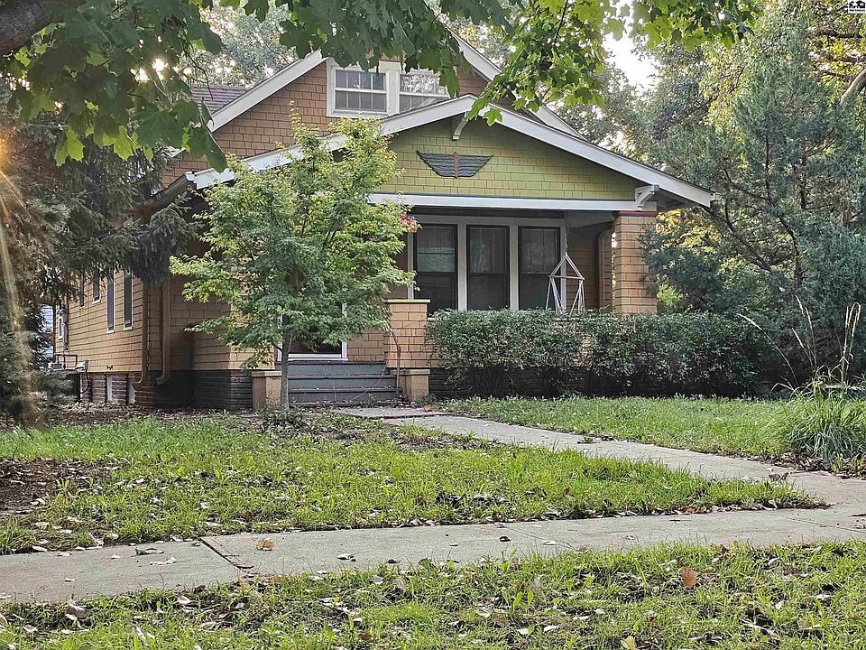 Lovely bungalow on tree shaded corner lot. Beautiful original built-ins, wood work and hardwood floors. Functioning pocket doors seperate the formal living and dining rooms. Deep full front porch for relaxing. Established gardens with fountains and gravel pathways. Truly a serene setting.