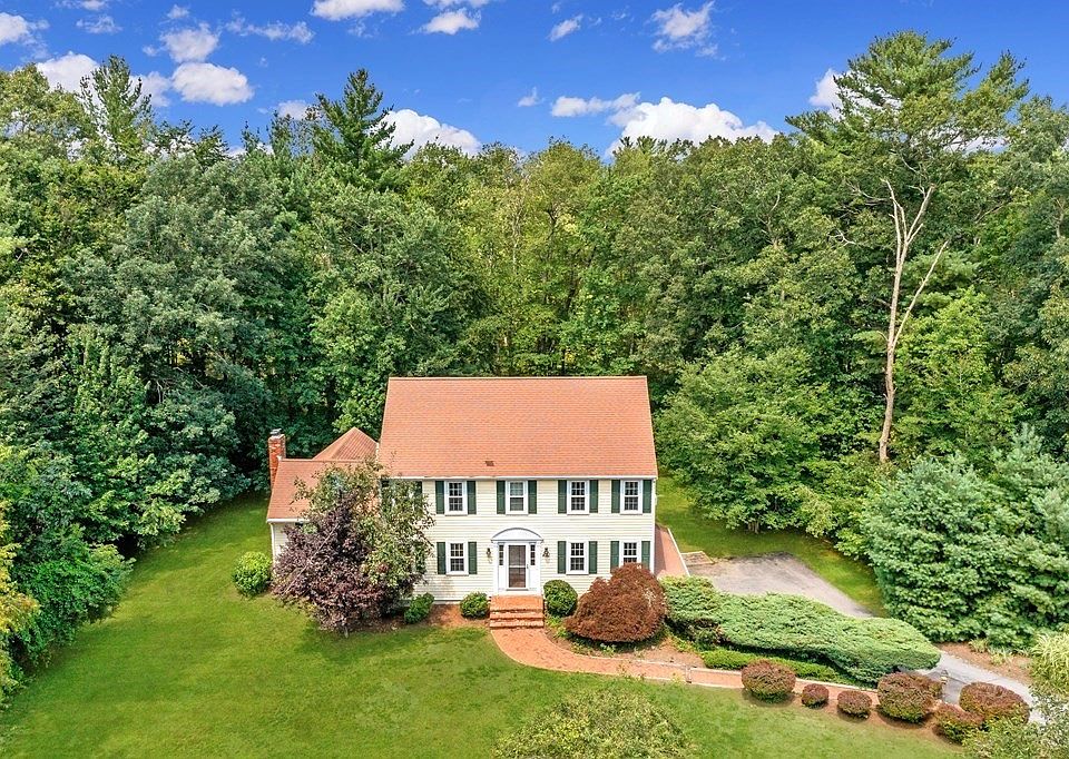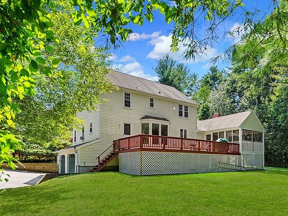 OH Canceled. -Offer Accepted. Colonial located at the end of a Cul-De-Sac on a nice level 3/4 acre lot, surrounded by Conservation Land. Privacy & Tranquility unite with plenty of room to Grow & Play! This warm and inviting home features over 2100 sf, 4 Bedrooms, 2.5 Baths, with H/W flooring throughout. The layout is ideal for everyday family living as well as entertaining. A sunny open kitchen/dining area with floor to ceiling bay windows overlooks the expansive back yard. Family room is picture-perfect and holiday-perfect with cathedral ceilings, brick wood-burning fireplace w/ a slider that opens to a large sun porch. Over-sized back deck with plenty of space for BBQ and furniture. 1st flr also includes Two additional rooms (Office, Dining), Mudroom, Powder Rm. Laundry. The upstairs offers 4 spacious bedrooms including an en-suite bath in primary BR. Wooded views and plenty of sunshine from every room! Also includes a 2 Car-garage and a partially finished lower level. Must see!