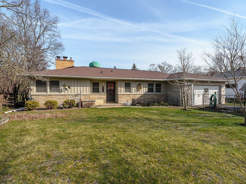 Enjoy the beautiful view of Kindleberger park from the many windows of this sweet Parchment home. The Limestone fireplace, Coved Ceilings and ornamental woodwork grace the large Livingroom which flows into the kitchen with eat in area and all appliances. With lovely views of the sweeping 1/2 acre yard and park. Two bedrooms on either end of the home one with a 1/2 bath attached and a full bath between. A fabulous three season room off of the kitchen adds wonderful space for gathering family and friends. Full basement with laundry and a second shower, as well as a second fireplace and space to finish as needed and plenty of storage area. A two car garage and a carport and a fenced back yard. This fabulous 1400 square foot ranch sits on a private road.