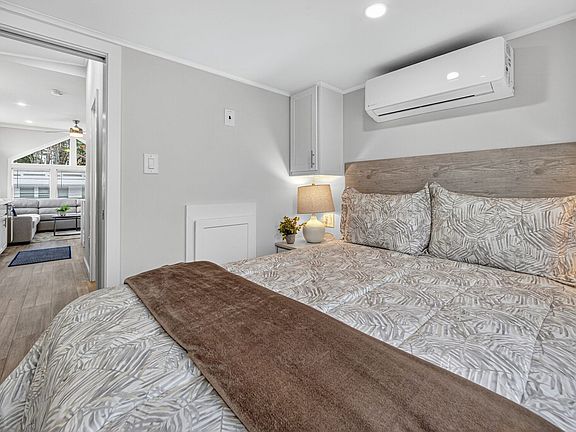 Brand-New 2026 Park Model Home - Fully Furnished This beautifully upgraded 2026 park model home offers modern comfort and effortless living. Featuring an open floor plan with vaulted ceilings, Low-E windows, and a custom 12' x 34' Florida Room, the space is bright, spacious, and perfect for relaxing or entertaining. The kitchen includes stainless steel appliances, LED cabinet lighting, and modern upgraded fixtures. Additional highlights include a sliding patio door with internal blinds, mini-split HVAC, ceiling fans, and low-maintenance landscaping. Move-in ready and fully furnished, this home also includes a 58" TV in the living room and a 42" TV in the bedroom-ideal for a seasonal retreat or second home.