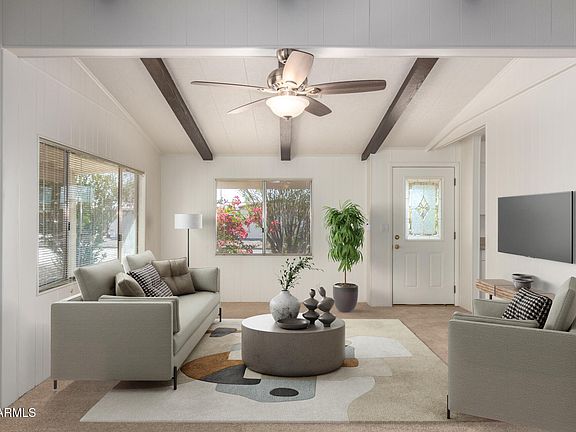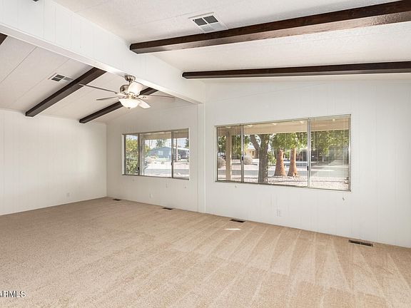 This home is perfect for our Arizona living! Plenty of space inside with an open floor plan and large bedrooms, and a long patio outside to enjoy our beautiful weather and community! Many upgrades have just taken place - New carpet, newer kitchen cabinets, new double oven, new bathroom vanities, lighting, bath tubs and shower surrounds, toilets, fresh interior and exterior paint, and more! This is luxury living at it's finest. Golf course, pickleball courts, community center, tech room, clubs, friends, and fun!