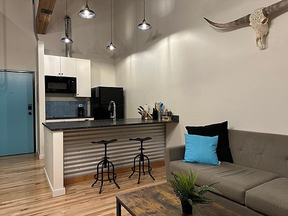 There is a shared laundry room at the end of the hall with two washers and dryers. There is NO dedicated parking- there are two City lots within one block and ample on-street parking on 5th St. Parking on 6th St will not be allowed.