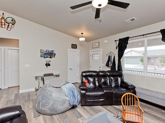 Come see this gorgeous almost new construction home was built with ease of living in mind. The open kitchen and living area allow for prime entertaining and flow perfectly into the split-bedroom design. The kitchen features quartz countertops, large center island, cabinets with crown molding, huge stainless-steel sink and appliances. The master bedroom lets in plenty of natural light with the tray ceiling featuring Barn door into the master bathroom complete with double sinks, quartz counters, tile enclosed shower and walk-in closet with shelving organizers. Two additional bedrooms, both with classy French door closets. The second bathroom has quartz countertops and an enclosed tile shower with bathtub. Tile floors in both bathrooms, carpet in the bedrooms for comfort, and Luxury Vinyl Tile throughout the main living areas. Large laundry room with sink and shelving. Seller offering $5,000 on concessions to buyers to help with rising interest rates.