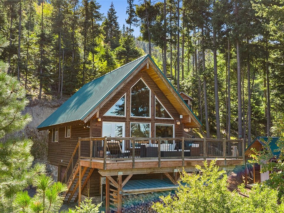 Stunning panoramic views from this charming Sky Meadows cabin retreat. This cozy mountain getaway features 1 bedroom + bonus room on the main floor along w/spacious loft/bonus room upstairs—perfect for extra sleeping space or game room. Features include tiled entry w/coat rack & storage bench, wood burning fireplace to keep you warm all winter, knotty pine ceilings & exposed beams add rustic charm. Updated kitchen w/tile backsplash & new countertops. Step onto the expansive deck to relax & take in the incredible view. Outdoor amenities include 562 SF garage, bunkhouse, treehouse & firepit. In the winter, snowmobile from your door. In the summer, enjoy the community clubhouse & swimming pool. This Sky Meadows gem truly offers year-round fun!
