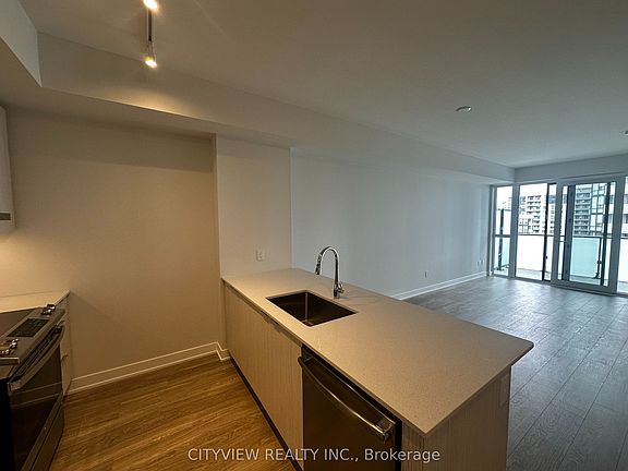 Much Sought After AVIA1 Tower in Mississauga's city Centre. Foodbasics right at your door step inside the building. Steps to square one shopping mall, Sheridan college, restaurants and much more! Laminate flooring throughout the whole condo with modern finishes throughout. Stainless steel appliances with Centre island overlooking dining/living room walking out to the balcony. Spacious primary bedroom with North views. Open concept den can be used as a second bedroom or study. 1 Parking 1 Locker Included.