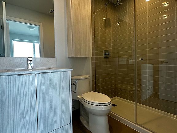 Junior 2 Bedroom 2 Bath. Laminate Flooring Throughout with a spacious second bedroom with a sliding door overlooking the kitchen. Modern kitchen with built in appliances. Primary bedroom has 3pc ensuite. Large balcony with north views. Amenities include gym, party room, theatre room, yoga/meditation room, kids zone, games room and rooftop area.