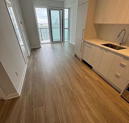 Sleek flooringSpacious functional bathroomBuilt-in stainless steel appliancesQuartz counter-topsOversized sinkUpgraded cabinetryStylish back-splash