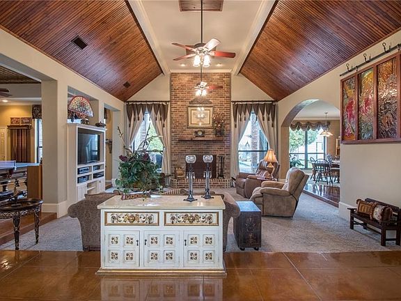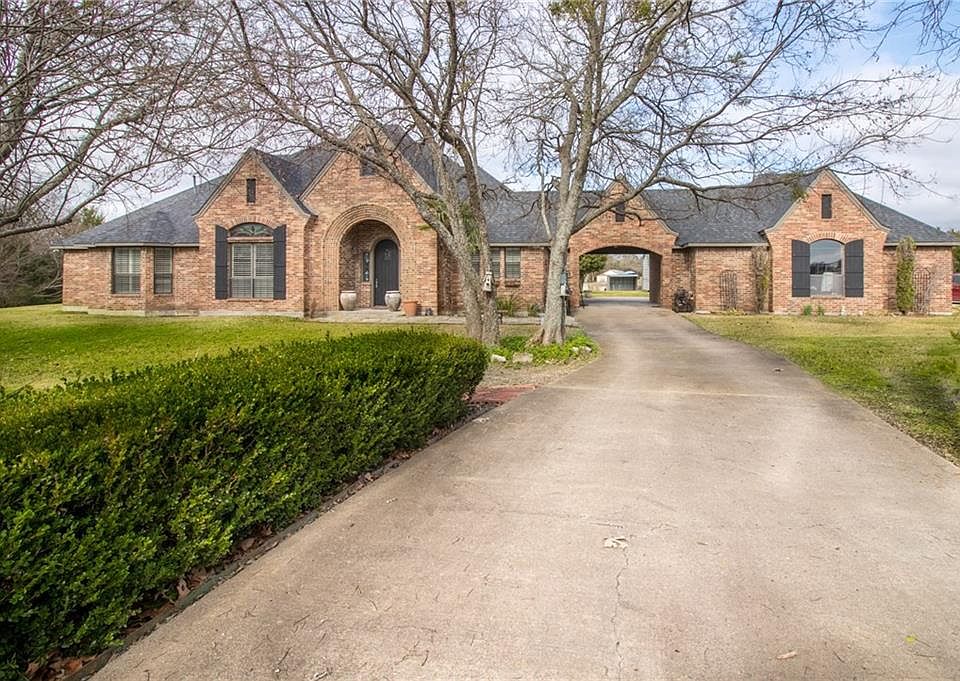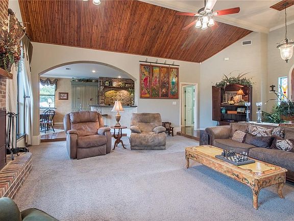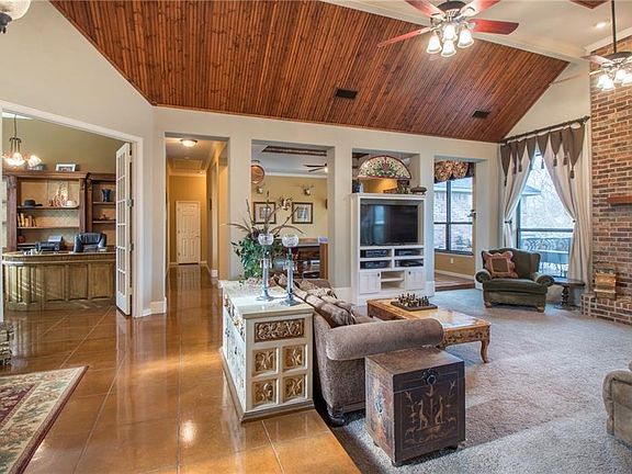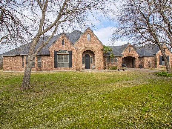 Quiet country living! Gorgeous custom home with granite countertops in kitchen with matching granite window sills in the main rooms, fabulous tile work in the master bath, stained glass windows, stained bead board ceiling living room, eye-catching arched front door, pool with spa, storage building and 3 car garage. 3 acres of the property are currently AG exempt. Electric iron gate for privacy, no HOA so park your boat or trailer. There are 2 large living areas, 1 is currently being used as a game room with a pool table. Home is 3 bedrooms with a large office that can be used as a bedroom as well. The house also features a pier in slab foundation with 60 piers down to blue shale under house, breezeway & garage.