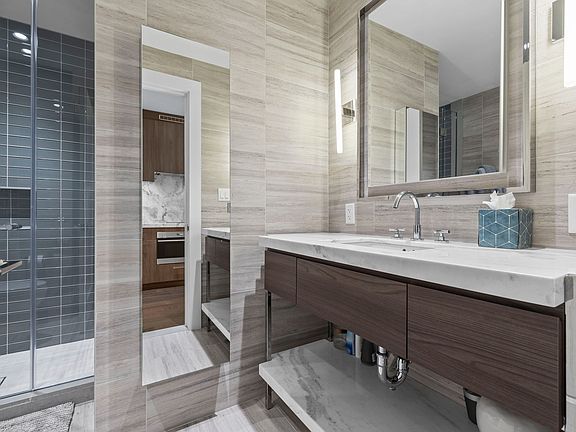 Glass showerFurnished studio livingSoaking tubExpansive floor-to-ceiling windowsSubzero and wolf appliancesMarble kitchenSpacious bathroom