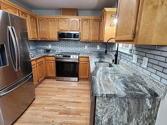 Completely renovated! New 3/4" red oak hardwood floors on main level. Kitchen has new Samsung steel appliances, French door refrigerator, microwave, slide in range, dishwasher and disposal. Large deck off dining room. Both bathrooms haver new ceramic tile, new vanities and new Calcutta Quartz counter tops. Bedrooms have ceiling fans and new carpet. House has all new light fixtures, hardware and switches. Finished basement with outside and inside entrance and family rom. Basement has new Vinyl plank flooring.