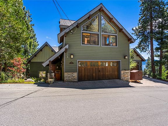 This exceptional 3-bed, 3-bath residence boasts timeless elegance and enviable curb appeal, inviting you to experience the epitome of luxury living. You'll be captivated by the seamless fusion of comfort, style & breathtaking views of Lake Tahoe. Current owners have done $750K of upgrades. The main floor consists of a living room, spacious eat in kitchen w/ stainless steel appliances, a flex room (extra bedroom) and full bath. A 2-car attached garage & an additional detached garage, provides versatility & convenience. Below the detached garage there is a well-appointed workout room. Upstairs, you'll find the spacious primary suite with a separate sitting area, 2 guest bedrooms, full bath and utility closet. Storage and a temperature controlled wine room on lower level. Your furry companions will feel right at home in the fenced dog run, while you enjoy slate patio area w/ yet another cozy fire pit, perfect for creating cherished memories w/ family and friends.