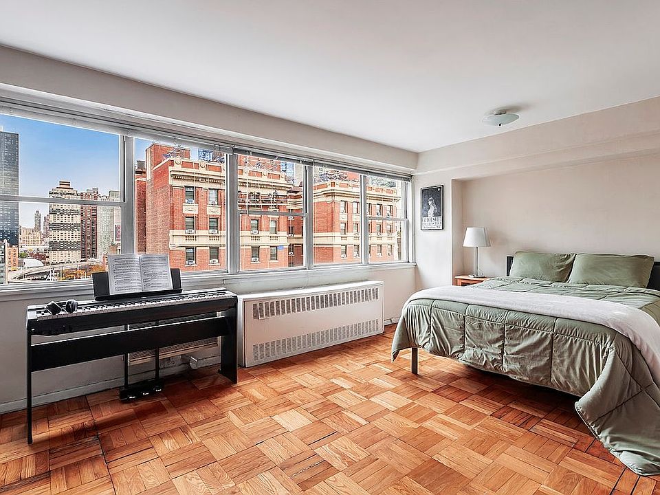 Situated on the 15th floor, this spacious alcove studio/junior 1-bedroom, offers stunning panoramic views of Midtown. The unit features a wall of five large windows, allowing for an abundance of natural light. Thanks to its generous alcove, the space can easily be converted into a full 1-bedroom (see alternate floorplan)
