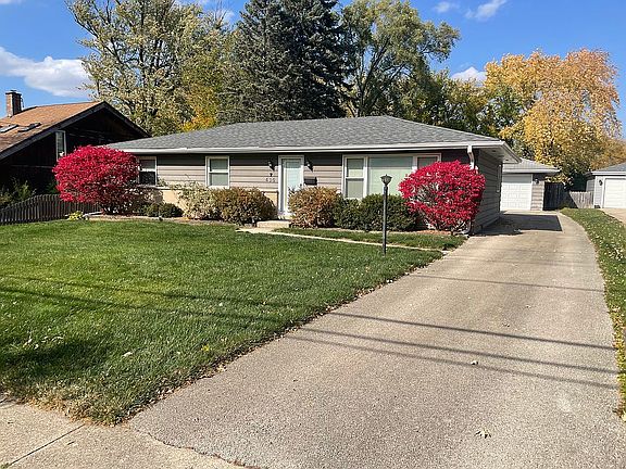This 3-bedroom, 2-bathroom ranch, situated on a handsomely landscaped 0.28-acre lot, boasts an open floor plan, real hardwood floors, and abundant natural light. The kitchen features stainless steel Frigidaire Gallery series appliances, black pearl granite countertops, rubberwood cabinetry, and diagonally laid porcelain tile. The mudroom and laundry room, located off the back of the house, have the same tile and include a brand-new, king comforter size Samsung washer and dryer. The dining room, with its granite serving shelf and hardwood floors, opens to the living room, providing ample space for entertaining. The south-facing living room features nearly floor-to-ceiling windows and hardwood flooring. The primary bedroom includes a bathroom with an oversized vanity, a glass-door shower, and a dual-flush toilet. Sliding glass doors in the primary bedroom lead to the back patio. The hall bathroom offers an 18 x 60-inch tub with a shower, an upgraded oversized vanity, and a dual-flush toilet. Both additional bedrooms provide more than adequate closet space. The huge, secluded backyard is lined with mature blue and green spruce, elm, mulberry, and maple trees (some of the tallest in the neighborhood). The oversized, detached two-car garage has its own electrical panel, natural gas line, and furnace hookup, ready to keep your cars warm in the winter. The Elementary and high schools, as well as Sunset Knoll Park, The Great Western/Prairie Path Trails, Lombard Metra Train Station, and Lilac Park are all within walking distance.