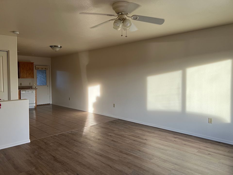 Large duplex, 2 bedroom, 1 bath with washer dryer hook up, covered carport, private back patio, and storage room. Fresh paint and new living room floor.
