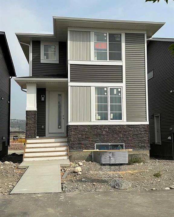 NEW PRICING - IMMEDIATE POSSESSION CONFIRMED BY THE BUILDER. BRAND NEW HOME by Douglas Homes, Master Builder in central Greystone, short walking distance to parks, the Bow River, major shopping & interconnected pathway system. Featuring the Windermere with main floor forward enclosed Flex Room & separate side entry on an R-MX zoned home site for POTENTIAL future lower level suite. NOTE: a secondary suite would be subject to approval and permitting by the city/municipality. This gorgeous 3 bedroom, 2 & 1/2 half bath home offers 1490 sq ft of living space. This home is located on a River Avenue which provides immediate access to the interconnective pathway system, perfect for those looking for a outdoor lifestyle. Loads of Designer & upgraded features in this beautiful, open floor plan. The main floor greets you with 8' front door, soaring 9' ceilings, oversized windows, built-in niches & fireplace. Gleaming Hardwood floors flow through the kitchen, hall & nook adding a feeling of warmth & style. At the front of the home you'll find an enclosed bright Flex Room (could also be a main floor bedroom) with 8'0" French Door and storage closet for the work from home crowd. The Kitchen is completed with Quartz Countertops, two tone Kitchen Cabinets, 42" uppers with decorative enclosed bulkhead, plenty of drawers including Pots & Pan drawers, soft close doors & drawers & new stainless steel Kitchen appliance package. Upstairs you'll find a generous Primary Bedroom with Ensuite - Quartz Counters with double vanities, 5' shower with Designer tiled walls & toilet in its own private doored room all completed with ceramic tile flooring & large walk-in closet accessed from the bedroom. The 2nd floor is completed by two good size additional bedrooms, main bath tub/shower combination with tiled walls, window, Quartz countertop, undermounted sink & ceramic tile flooring. You will love the convenience of 2nd Floor Laundry Room for side by side laundry completed with ceramic floor tile. This is a very popular plan, great for young families, investors or the down sizers. Spacious, Beautiful and Elegant! The perfect place for your perfect home. Call today! Photos are from prior build & are reflective of fit, finish & included features. Note: Front elevation of home & interior photos are for illustration purposes only. Actual elevation style, interior colors/finishes, & upgrades may be different than shown & the Seller is under no obligation to provide them as such. Directions: Come to the Show Home first located at 500 River Avenue. Showings only during Show Home hours & days. Closed all Fridays THIS HOME IS UNDER CONSTRUCTION