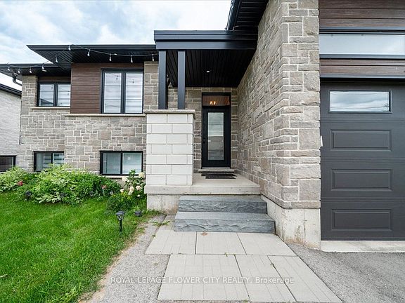 Charming 4-bedroom detached bungalow, featuring a warm and functional layout. The open-concept kitchen boasts granite countertops and stainless-steel appliances, flowing seamlessly into a bright and spacious great room highlighted by a built-in wall fireplace perfect for relaxing or entertaining. The main floor offers hardwood flooring throughout, a private primary bedroom with ensuite, an additional bedroom, and a full bathroom. Downstairs, the fully finished basement is flooded with natural light thanks to large windows and includes two extra bedrooms, a full bathroom, and a generous recreation room. With a separate entrance from the garage, there's excellent potential for an in-law suite. The basement is finished with durable plank laminate flooring. Set on a deep lot, this home also features solar panels to help lower hydro bills an eco-friendly and cost-saving bonus. A must-see property with versatility, charm, and smart upgrades.